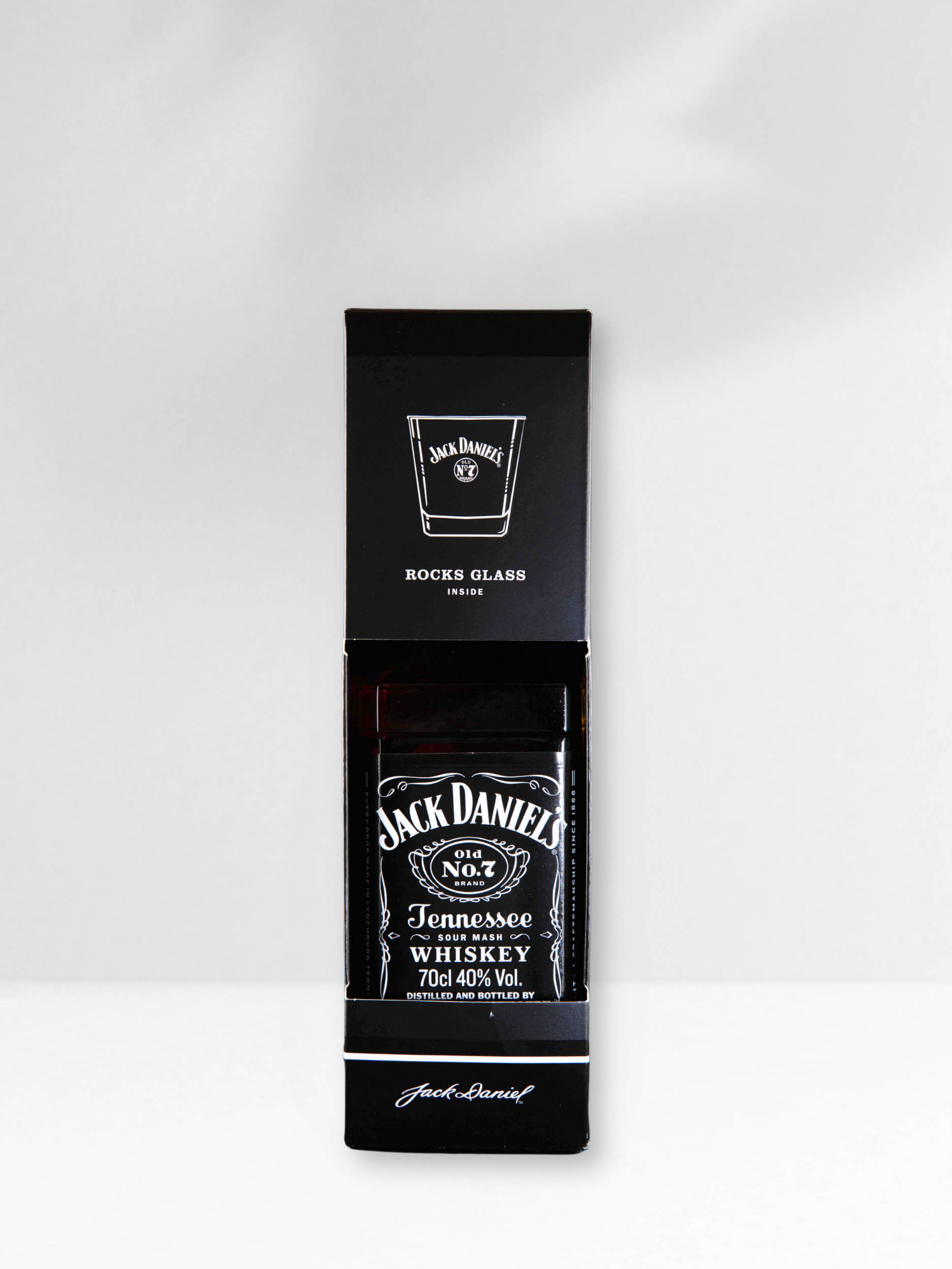 Jack Daniel's Old No. 7 je najpoznatiji Tennessee whiskey na svijetu, simbol američke tradicije i kvalitete. Proizvodi se u Lynchburgu, Tennessee, a karakterizira ga jedinstveni proces filtriranja kroz drveni ugljen, poznat kao charcoal mellowing, koji viskiju daje njegovu prepoznatljivost, glatkoću i bogatstvo okusa. Na nosu, Jack Daniel's Old No. 7 otkriva suptilne note vanilije, karamela, meda i prženog kukuruza, uz blagi začinski trag. Okus je glatki i bogat, s naglaskom na slatke note karamela, vanilije i laganih začina, dok se u pozadini osjeća suptilna dimljenost koja je tipična za ovaj viski. Završetak je dug, s blagim tragovima oraha i drvenastim notama koje ostaju na nepcu.