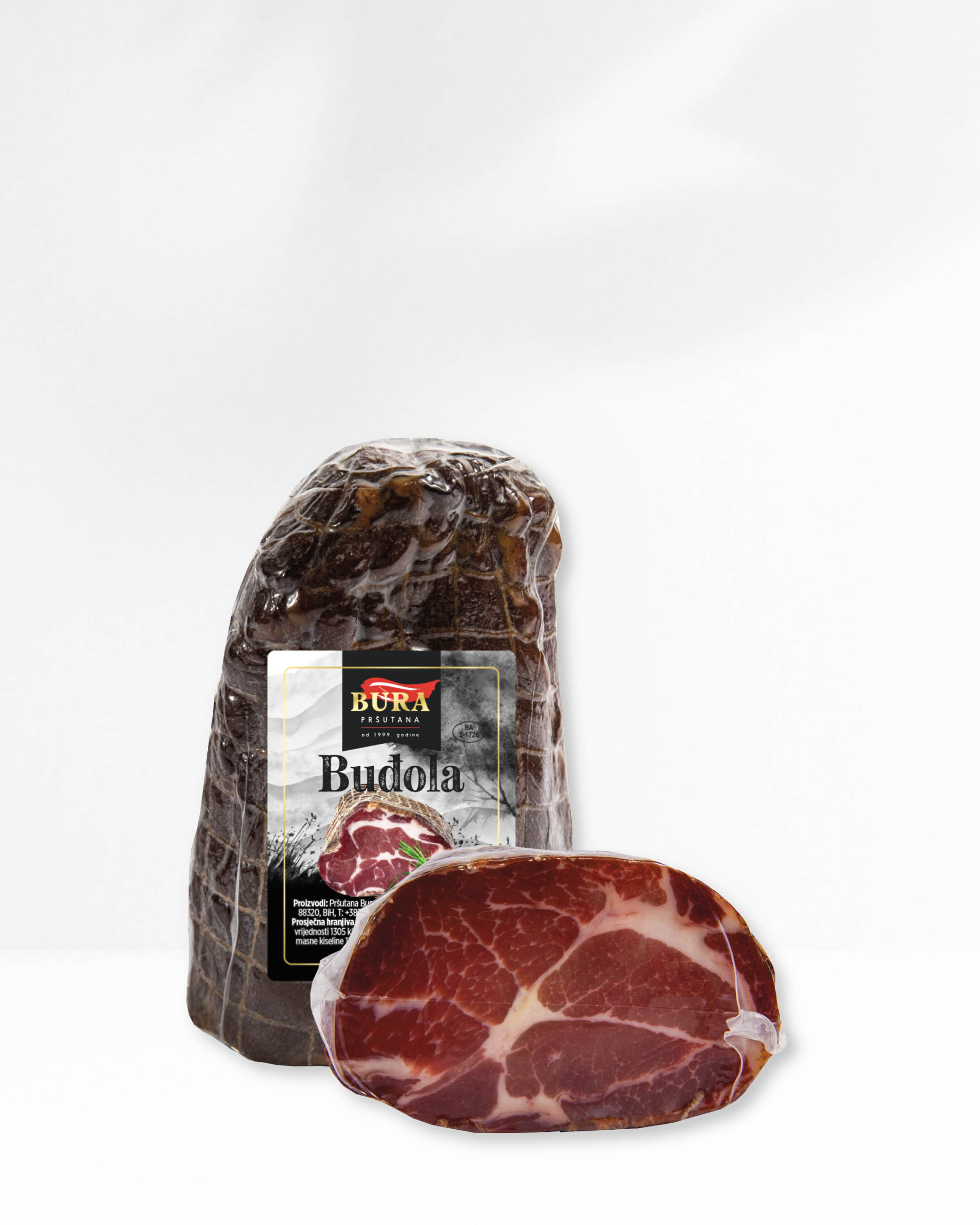 Buđola je delikatesni proizvod od svinjskog mesa, vrhunske kvalitete s blago naglašenom notom dima. Priprema od najkvalitetnijeg svinjskog vrata bez kosti. Blago je protkana masnoćom i zato je vrlo sočna