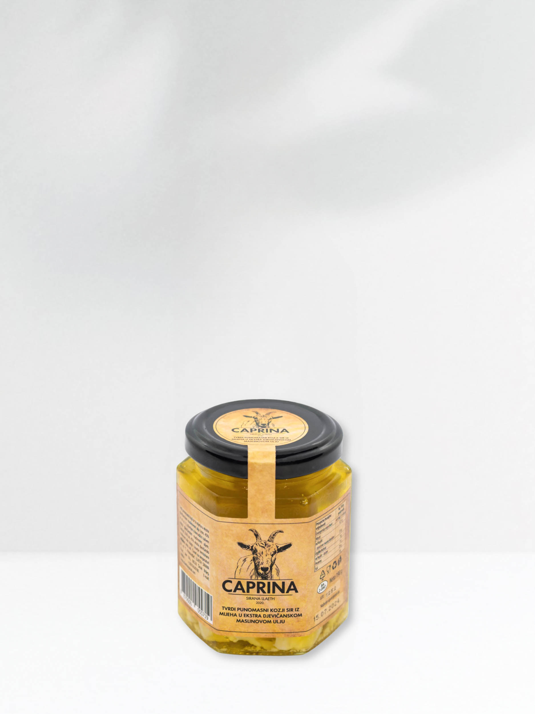 Caprina u maslinovom ulju je jedinstvena delicija koja spaja bogatu tradiciju hercegovačkog sirarstva i blagotvorna svojstva vrhunskog hladno prešanog maslinovog ulja. Ovaj kozji sir proizveden je od svježeg kozjeg mlijeka, a nakon minimalno 80 dana zrenja u prirodnom mijehu, pažljivo je uronjen u aromatično maslinovo ulje koje mu daje dodatnu mekoću i intenzitet okusa.