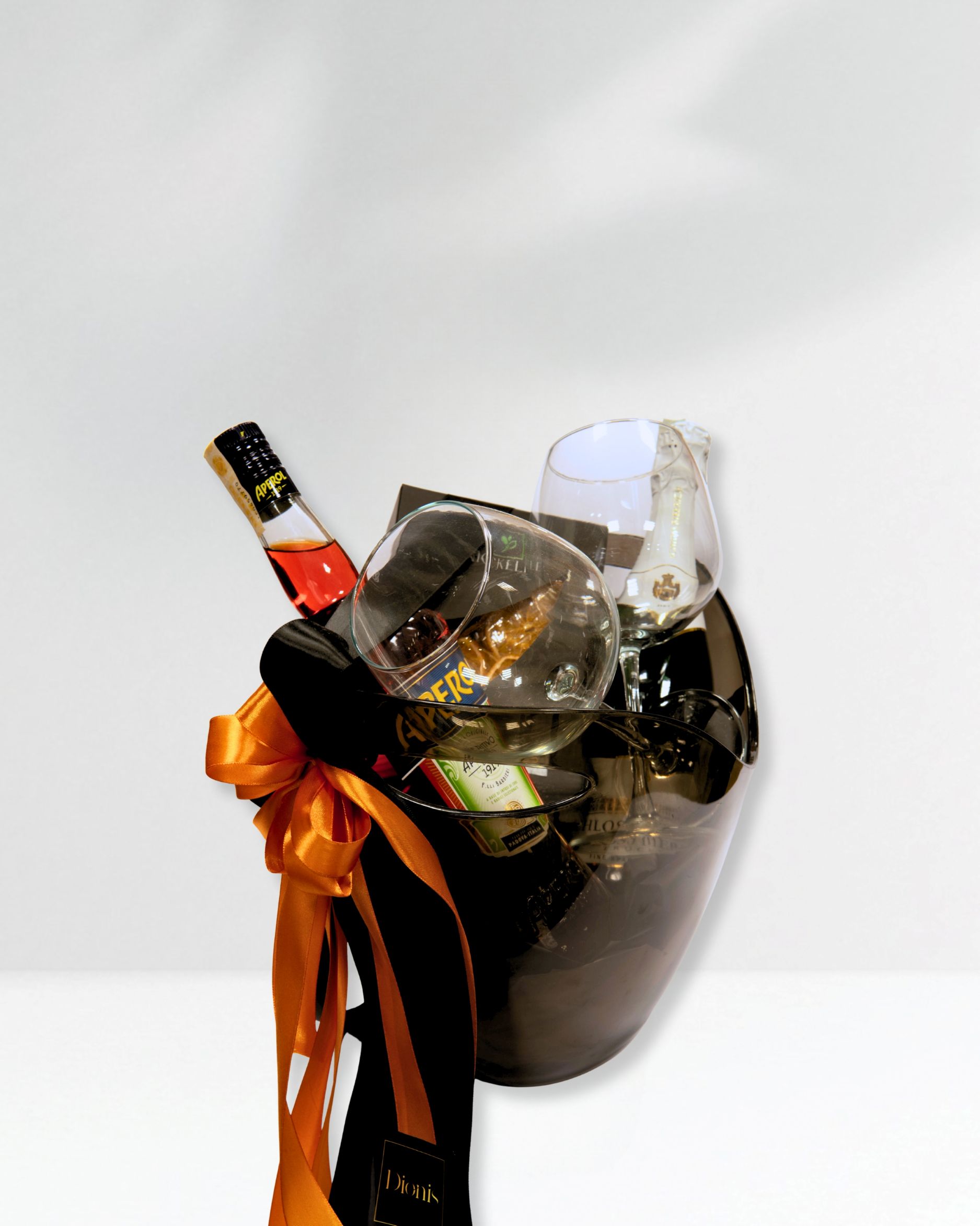 U elegantnoj crnoj kibli od 8 litara smješten je moderan poklon paket savršen za pripremu omiljenog koktela. Ovaj pažljivo složen set sadrži Aperol 1 L, Schloss Sekt pjenušavo vino, dvije elegantne čaše za vino, te dehidriranu naranču – idealan dodatak za savršeni Aperol Spritz.