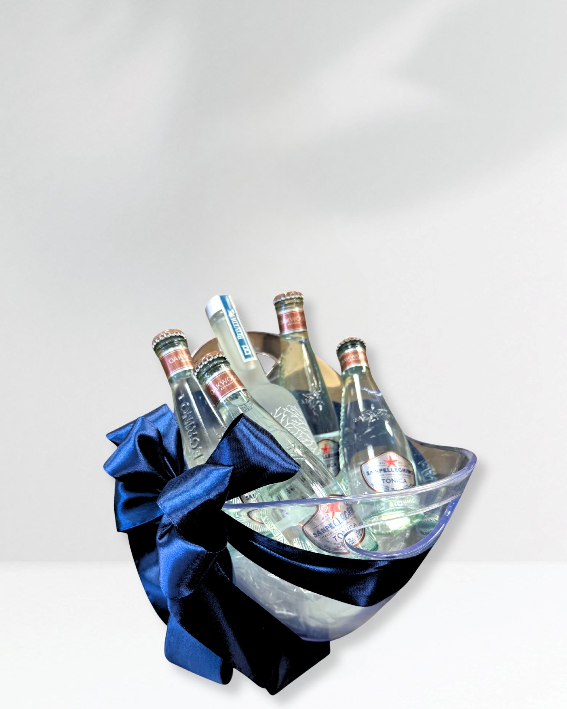 U elegantnoj prozirnoj posudi za led od 6,5 litara smješten je minimalistički, ali profinjen poklon set za uživanje u vrhunskom piću. Ovaj pažljivo sastavljen paket sadrži Belvedere Vodku 0,7 L – poznatu po svojoj čistoći, glatkoći i iznimnoj kvaliteti, te četiri boce Sanpellegrino Tonica 0,2 L, savršene za pripremu osvježavajućih koktela.