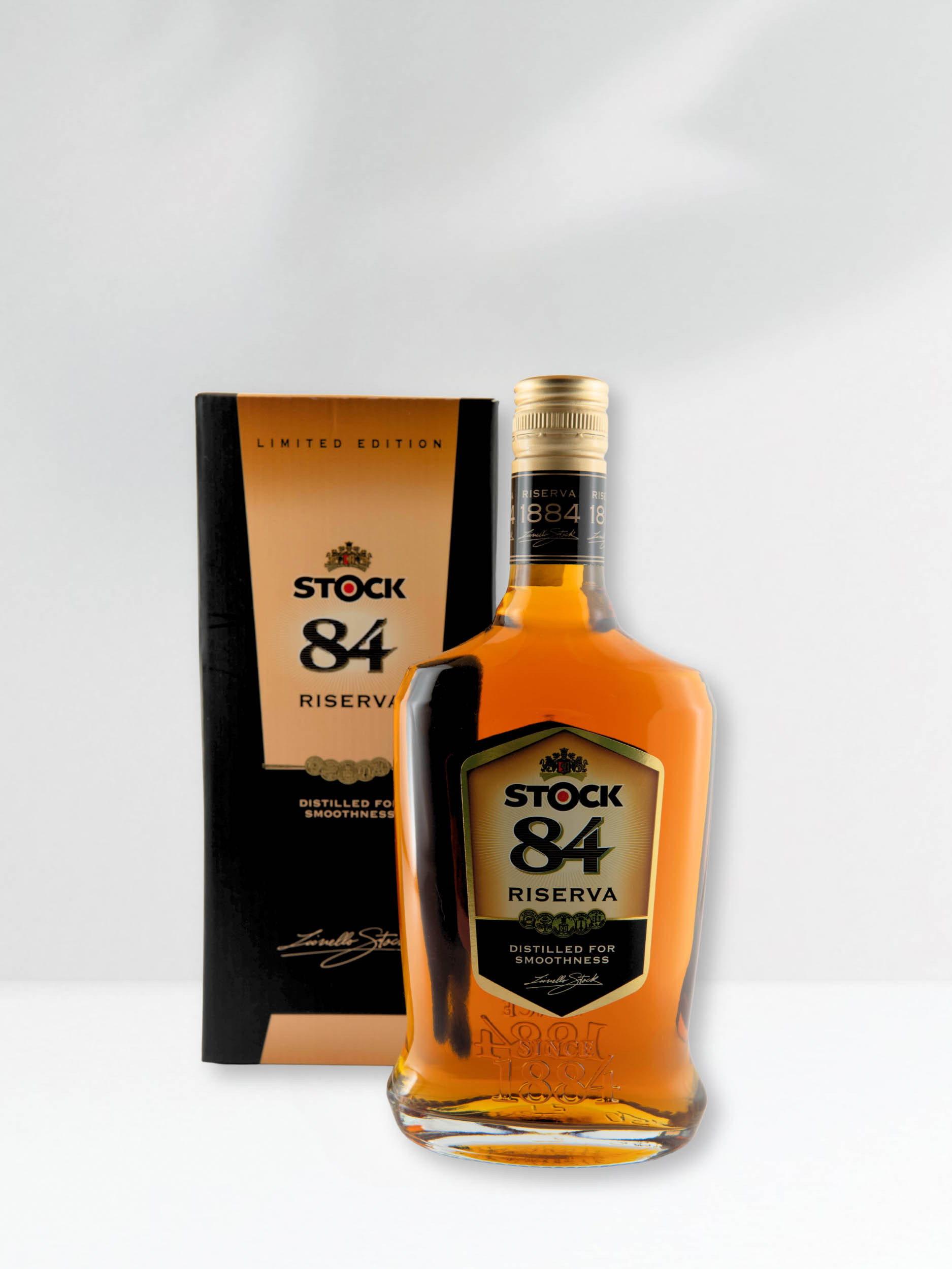 Stock84 je brend koji je poznat po svojoj tradiciji i kvaliteti u proizvodnji viskija. Stock viski proizvodi se u Italiji i karakterizira ga glatkoća i pristupačnost, što ga čini popularnim odabirom za uživanje u raznim prigodama. Iako nije tipičan škotski ili irski viski, Stock nudi viski s jedinstvenim karakteristikama, koji je uglavnom dostupan u različitim varijantama – od običnog blendiranog viskija do jačih, složenijih verzija. Na nosu, Stock viski otkriva note vanilije, karamela i lagane začinske tonove, dok se u pozadini osjeća suptilna drvenasta aroma. U okusu je glatki, s blagim notama meda, orašastih plodova i laganih dimljenih tragova, uz uravnoteženi završetak s blagim drvenim i začinskim tragovima.