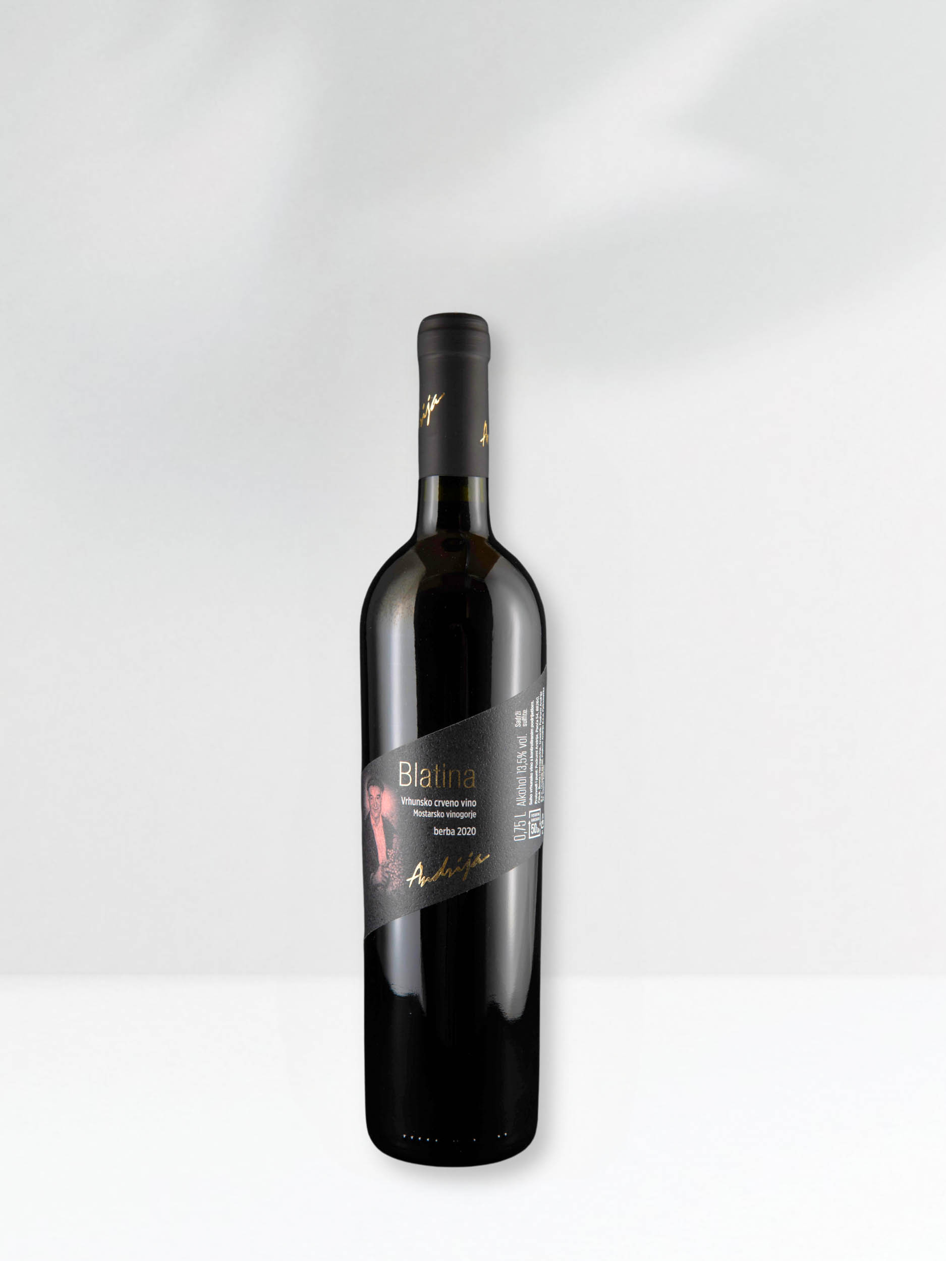 Blatina Andrija je moćno vino izraženog tijela, proizvedeno od autohtone sorte Blatine. Rubin crvene boje, odlikuje se harmoničnim i svježim okusom koji se razvija tijekom minimalno dvije godine odležavanja u hrastovim bačvama, čime vino dobiva svoju kompleksnost i puninu
